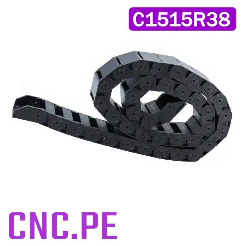 Cadena portacable 15×15 mm R38 semiabierta en Nylon PA66. Ideal para CNC y automatización. Flexible, resistente y empalmable.