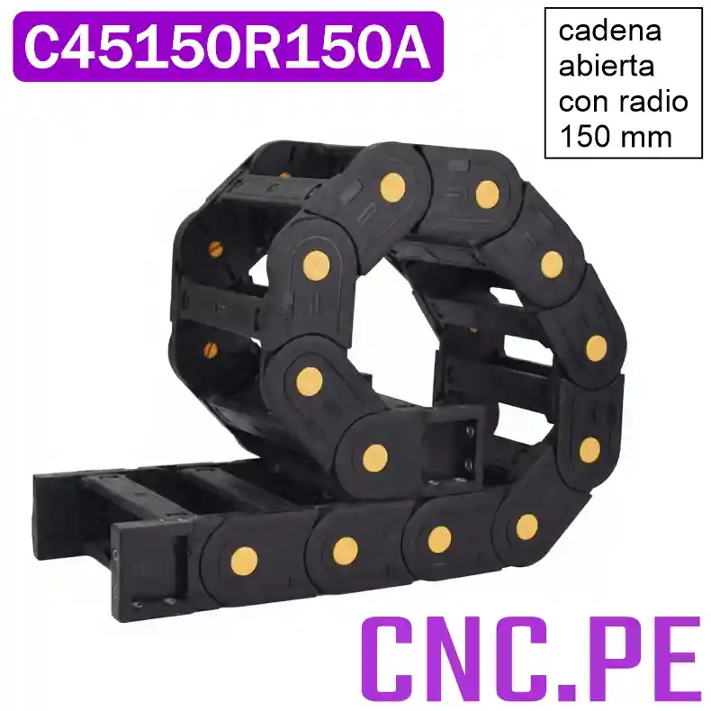 La cadena portacable 45×150 R150 modelo abierto es un componente esencial para la protección, guiado y organización de cables eléctricos, mangueras neumáticas y líneas de señal en sistemas con movimiento continuo. Gracias a su radio de curvatura de 150 mm, permite trayectos más largos y suaves, reduciendo significativamente el estrés mecánico en los conductores, lo que se traduce en una mayor vida útil del cableado.