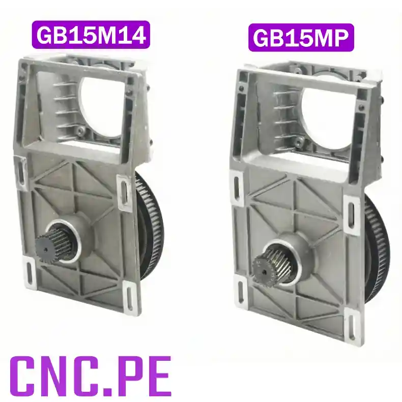 Gracias a su piñón helicoidal de 23 dientes y su reducción 5 a 1 mediante faja HTD 5M, esta caja reductora es ideal para ejes X o Y de máquinas CNC de gran formato, donde los tornillos de bolas no son viables por longitud, pandeo o costos.