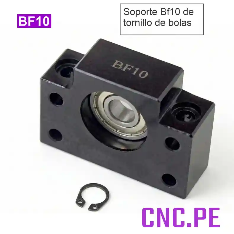Además, este modelo BF10 cuenta con un diámetro interno de 8 mm, diseño tipo soporte de pie, e incluye anillo de retención, lo que facilita una instalación segura y confiable. Por ello, es ampliamente utilizado en máquinas CNC, impresoras 3D, routers, equipos de automatización y sistemas industriales.